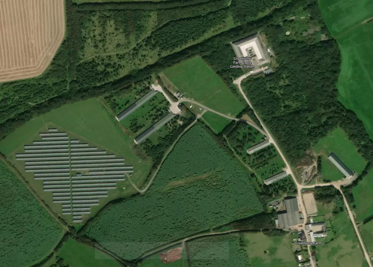 These images are a photographic tour of operational and decommissioned Cable Landing Stations in the Bude and Widemouth bay Cable Landing Zone. The two aerial shots (Lumen CLS in Bude and Creathorne Farm) are screen grabs credited to https://satellites.pro, all other images were made by me during fieldwork in June 2021.